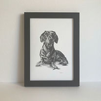 The original sketch of this lovely Dachshund was hand-drawn by Kelly using a range of graphite pencils. The image captures this much loved pet, affectionately known as the Sausage Dog.